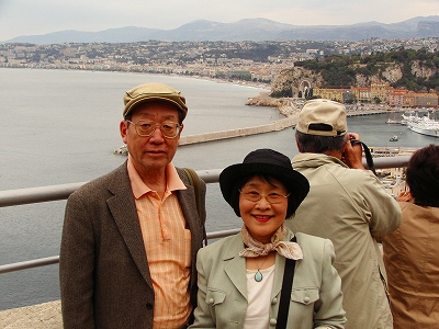 風力発電も見られた。左手にスイスアルプスの冠雪した峻厳な山を見るともうすぐニースである。