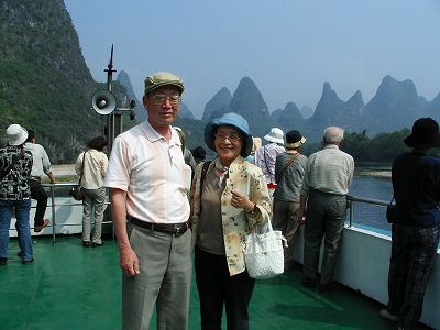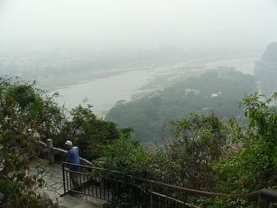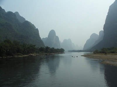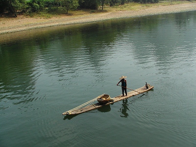 「陽朔」までの80kmを5時間で下る。竹の筏の船がゆらゆら沢山浮かんでいる。