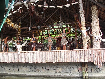 トロッコに乗り、更に歩いて小さな船に乗る。
