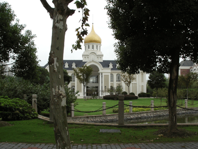 日本語科の建物の屋根も日本風にしてある。次いで謝さんのマンションに行く。