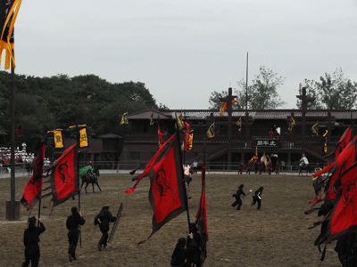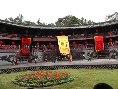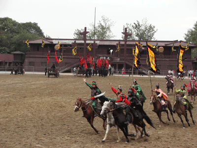 赤壁の船など三国志ゆかりのセットがある。水滸城に入ると俄然人が少ない。