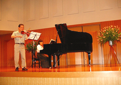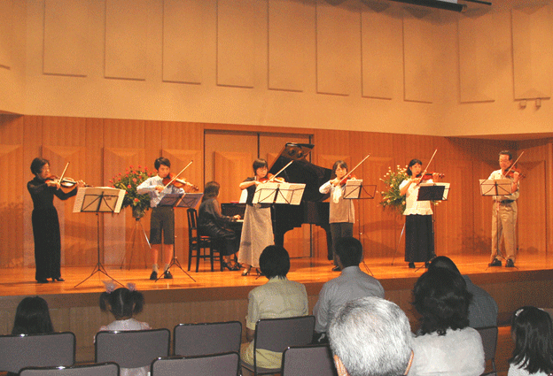 弦6人でバッハのブランデンブルグ協奏曲3番、家内(美津子)の伴奏でヘンデルのソナタ3番を演奏